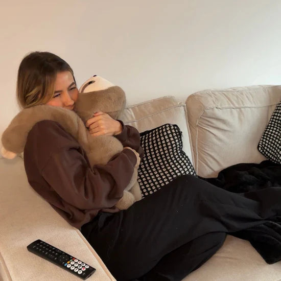 C’est pourquoi nous avons conçu nos compagnons lestés différemment. Sunnie le Paresseux est doté de bras extra-longs et lestés qui s’enroulent autour de vous et restent bien en place pendant que vous travaillez, lisez ou faites défiler votre téléphone.